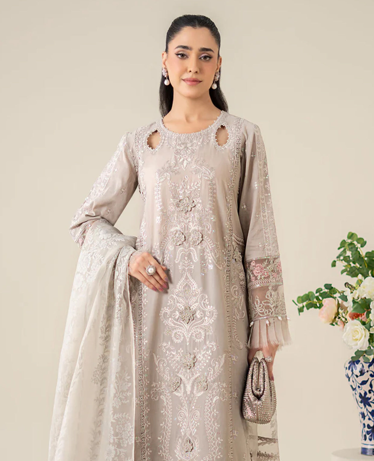 3 Piece Embroidered Organza Suit