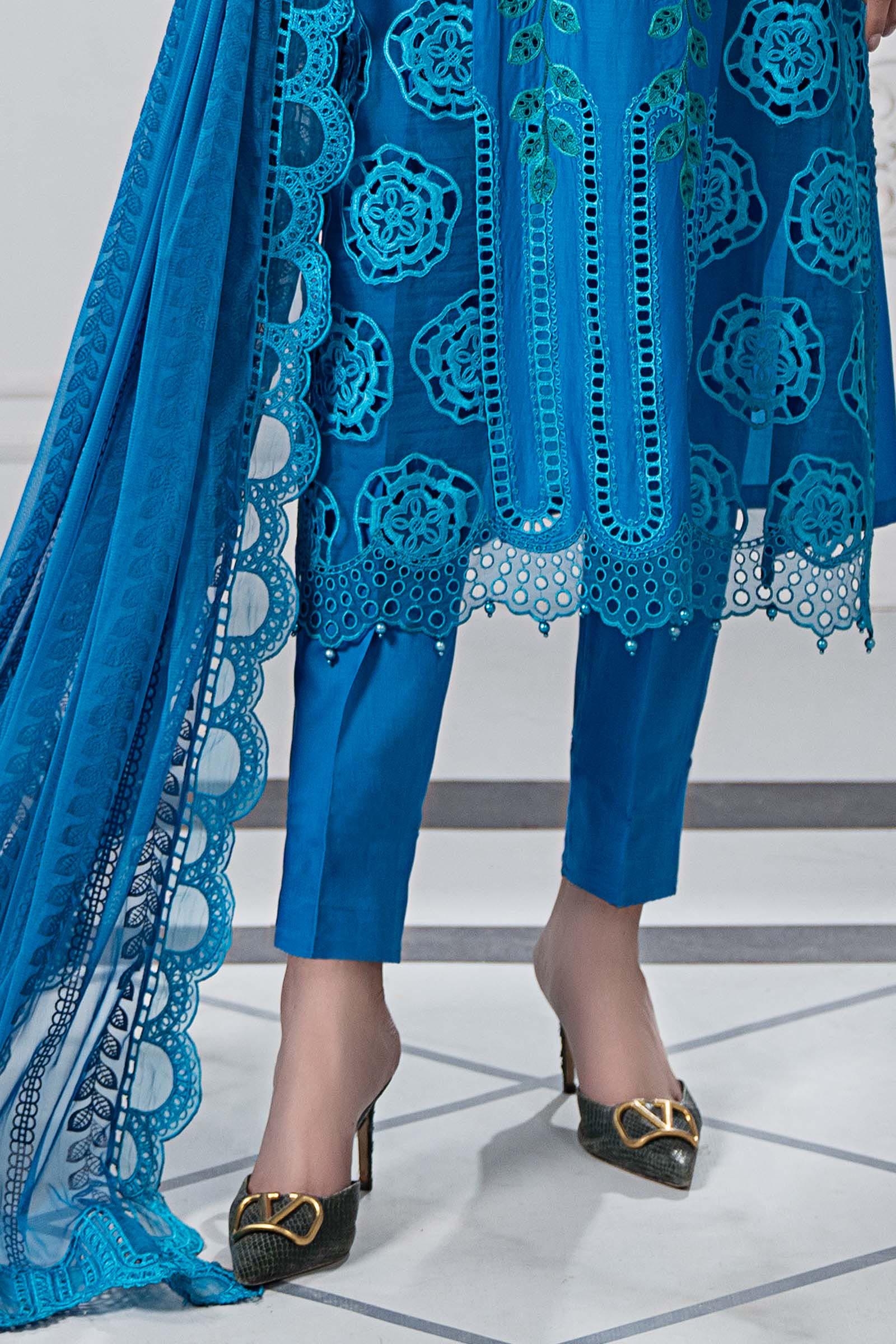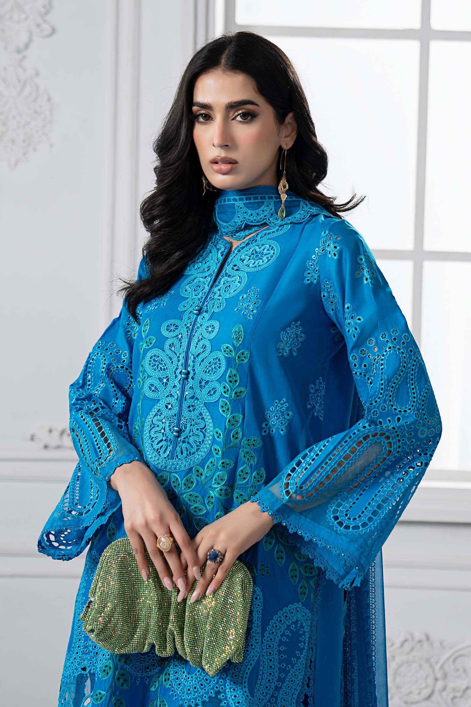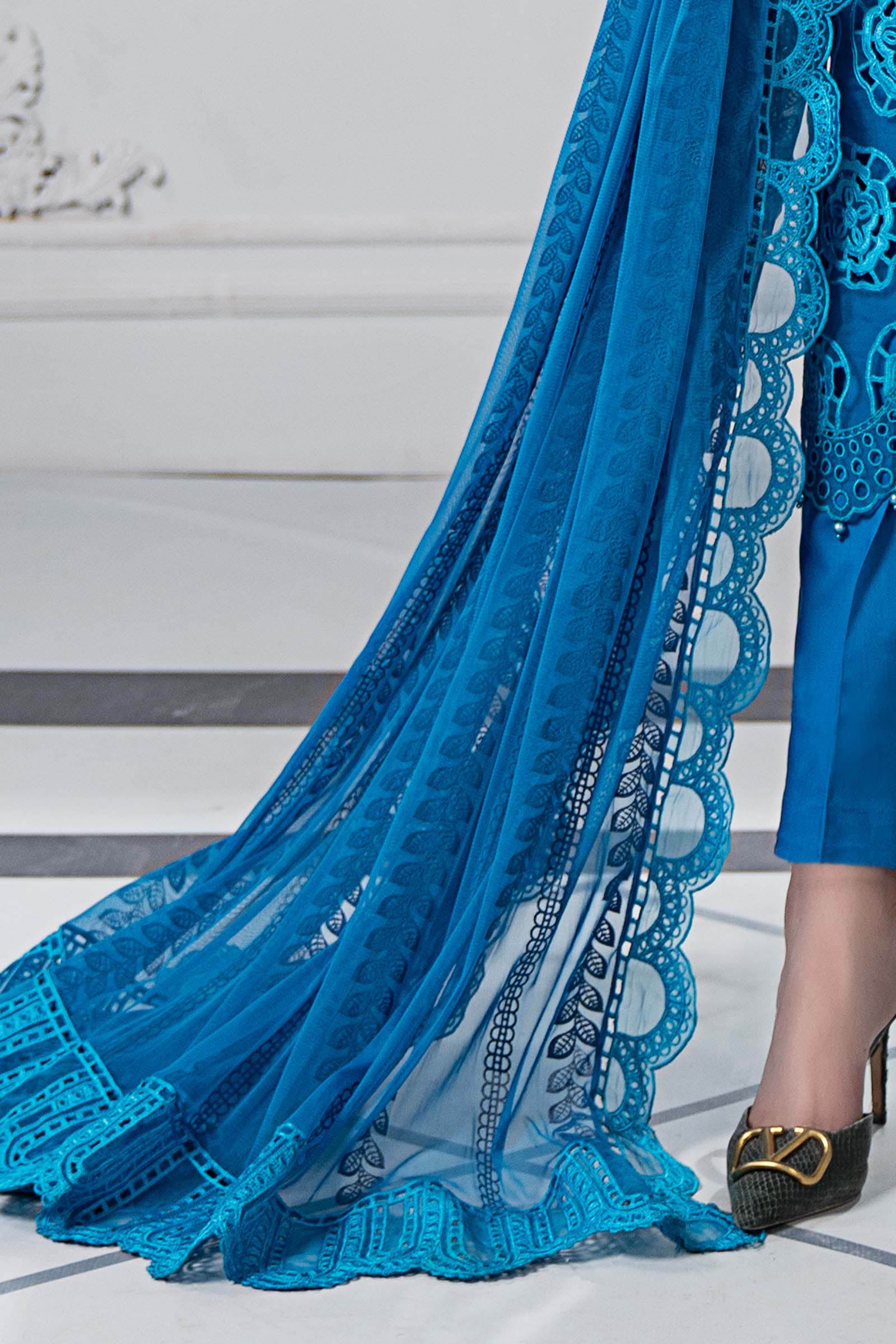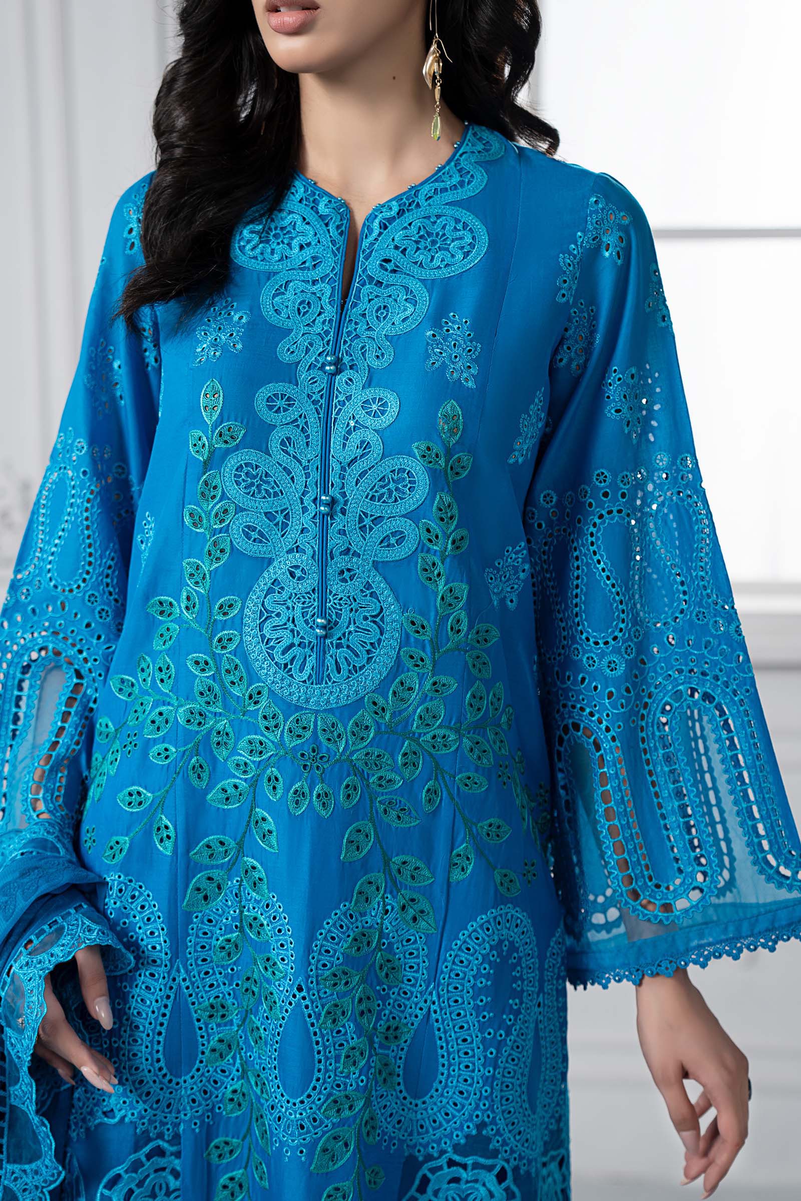 Shirt Straight-Cut Shirt Embroidered Organza Neckline With Loop-Buttons Detailing Embroidered Center Front Panel Embroidered Side Front Panels With Embroidered Organza Detailing Embroidered Organza Border With Pearl Drop Detailing Embroidered Sleeves With Embroidered Organza & Lace Detailing On Border Dyed Back Fabric: Lawn Color: Ferozi Trousers Dyed Straight Trousers Elasticated Waistband Lace Detailing On Hem Fabric: Cambric Color: Ferozi Dupatta Dyed Paste Printed Dupatta Four-Side Embroidered Organza Border Fabric: Net Color: Ferozi Model is wearing xs size Note: Dry Clean Only