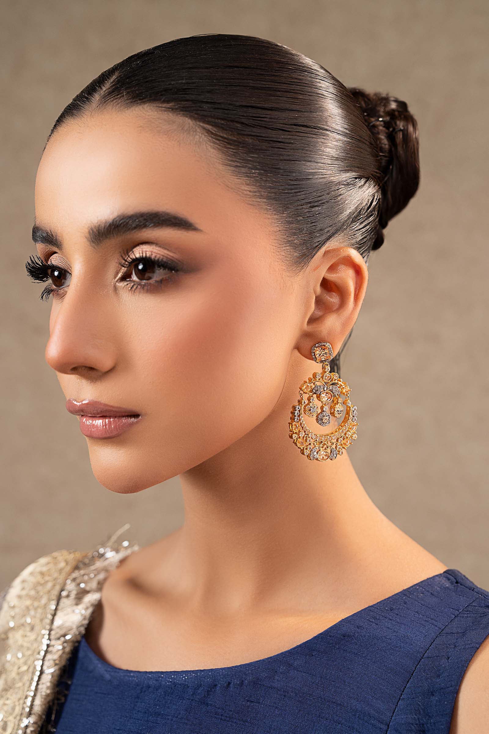 Steeped in elegance, these earrings blend the soft glow of champagne zircons with the brilliance of white zircons A refined fusion of tradition and sparkle, perfect for adding a graceful shimmer to your festive and wedding looks.
