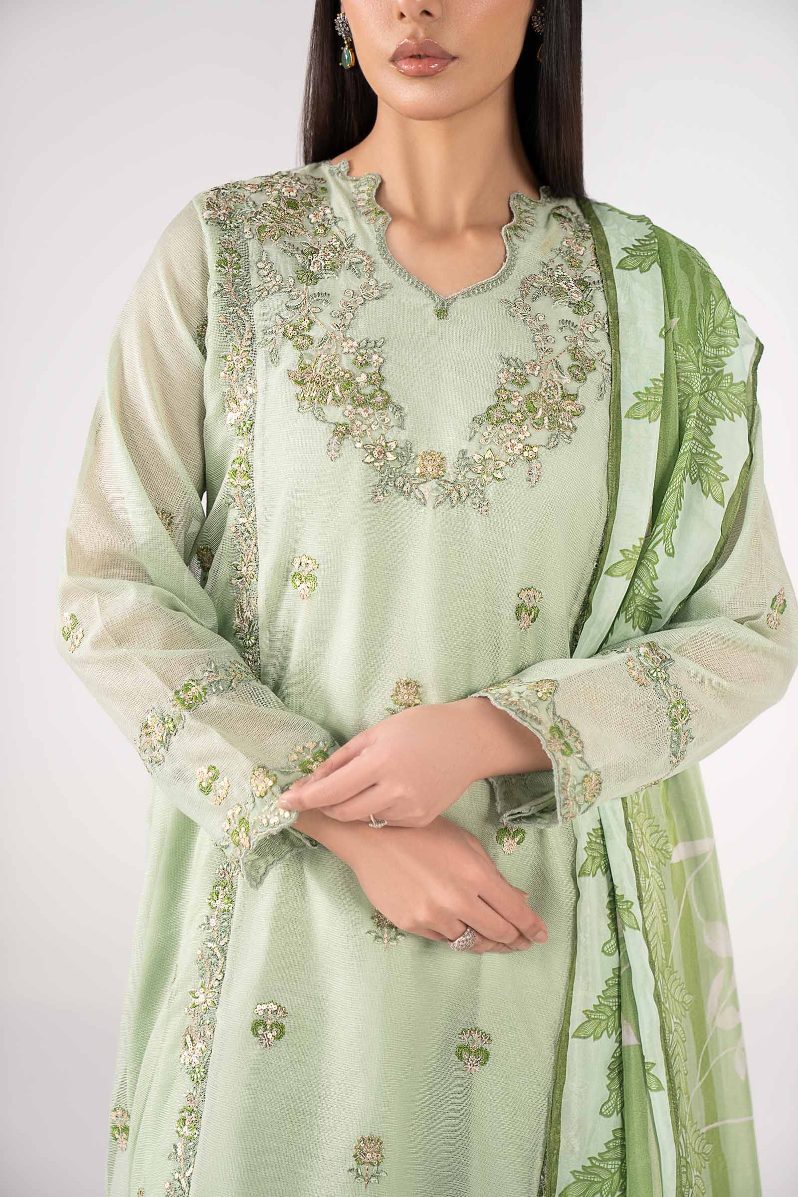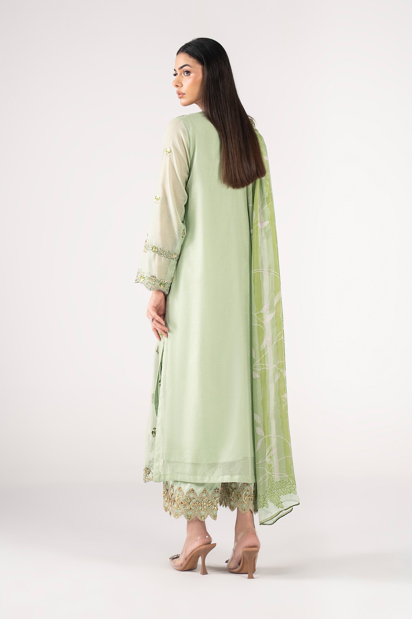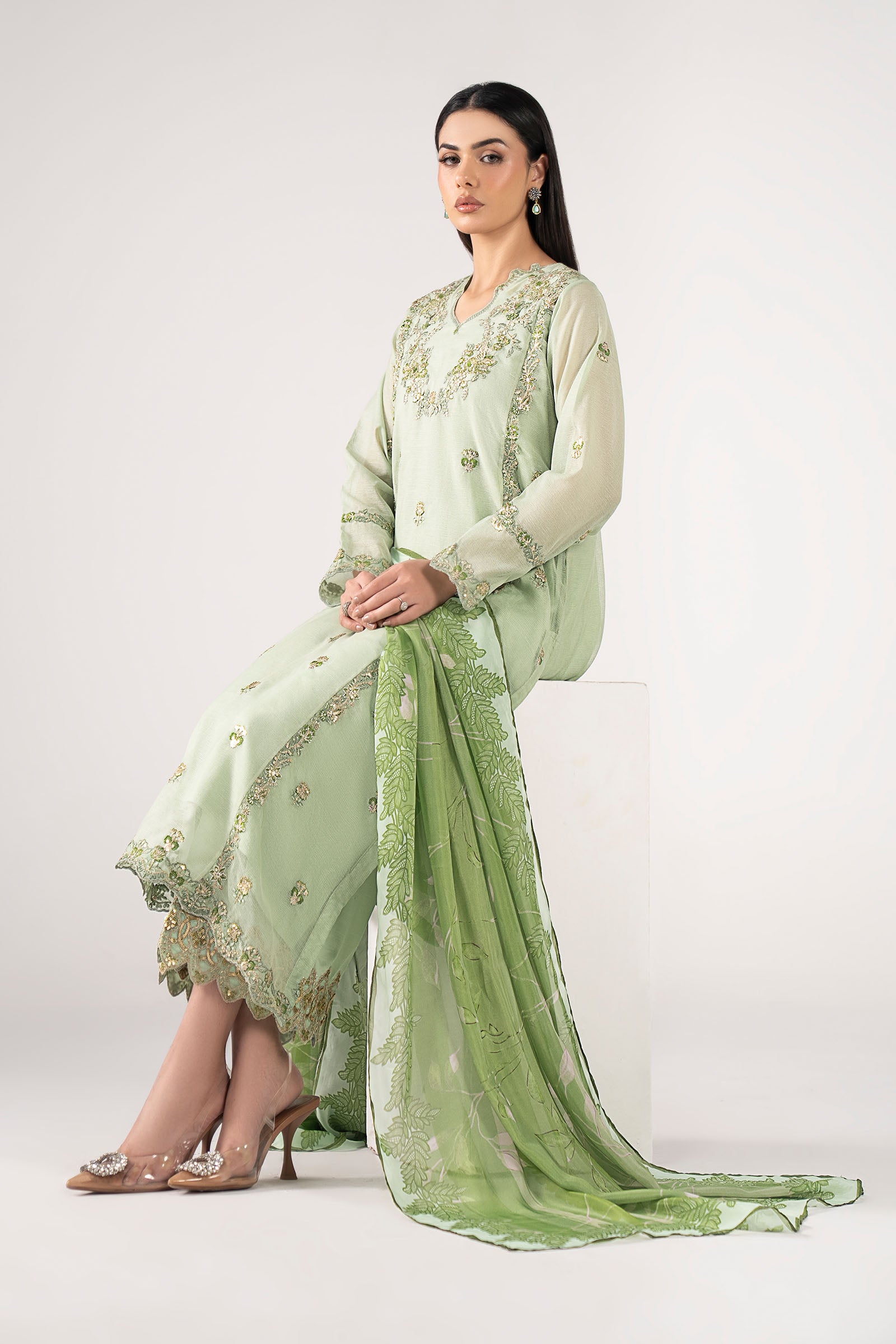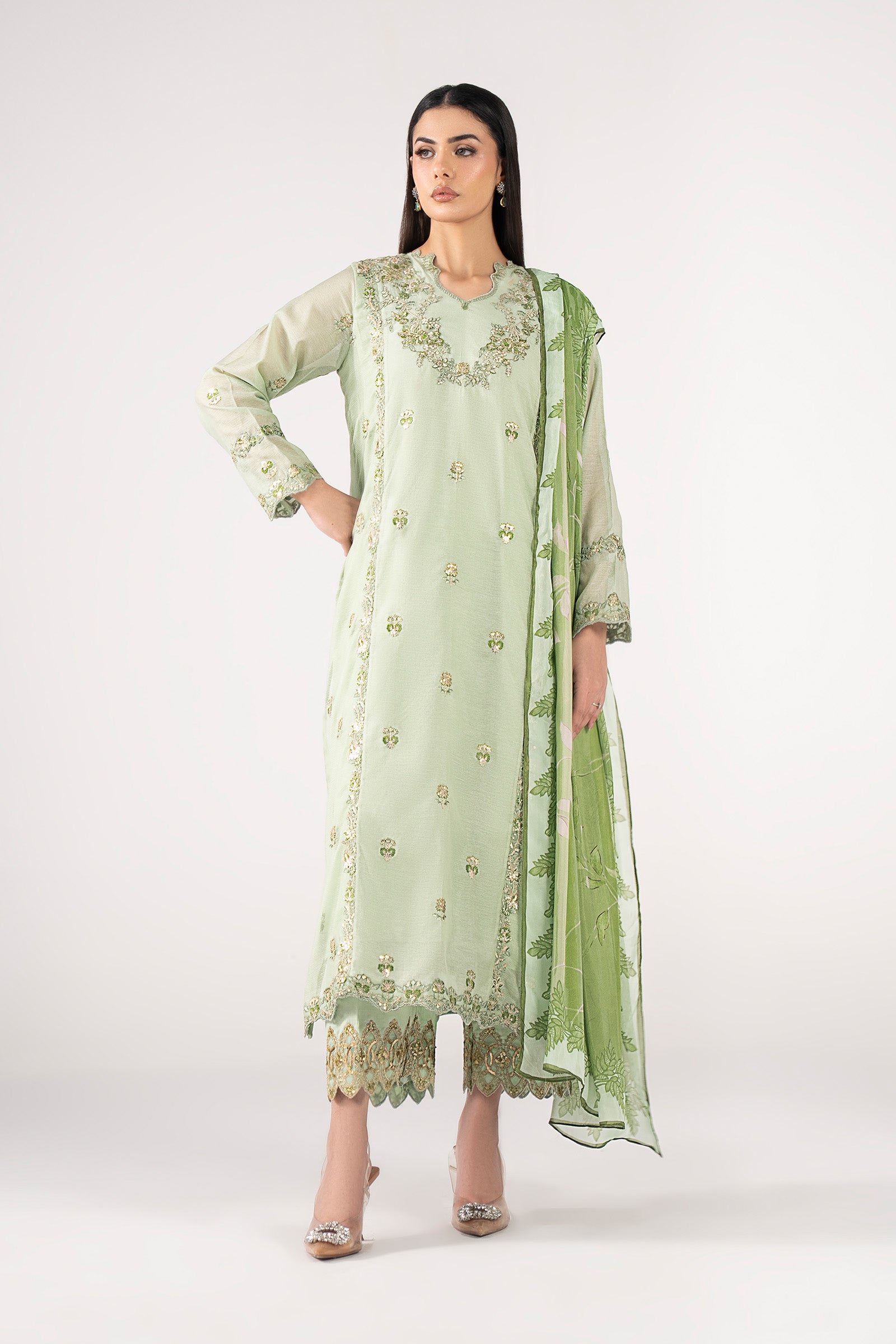 Shirt Embroidered Neckline Spray Embroidered Center Panel Embroidered Side Panels Embroidered Front Border Embroidered Straight Sleeves Color: Sea Green Fabric: Silk Cotton Net Undershirt Dyed SleevelessUndershirt Color: Sea Green Fabric: Viscose Raw Silk Trouser Dyed Straight-Leg Trouser Elasticated Waistband Embroidered Hem Color: Sea Green Fabric: Viscose Raw Silk Dupatta Digital Printed Dupatta Color: Sea Green Fabric: Medium Silk Model is wearing xs size Note: Dry Clean Only