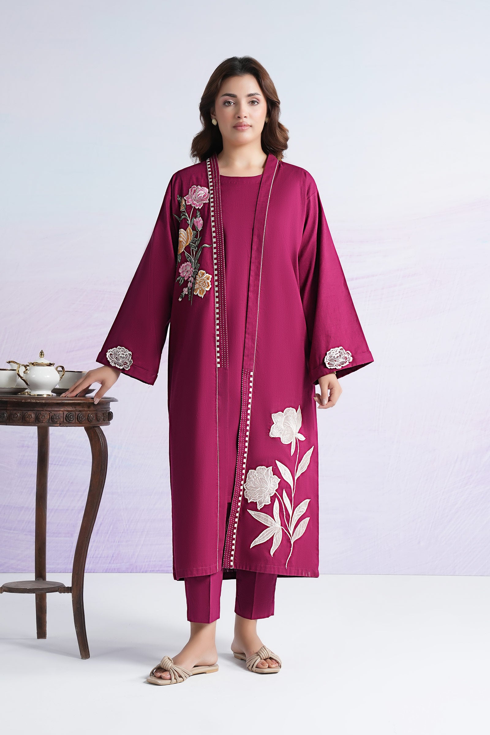 JacketEmbroidered Front-Open Kimono JacketFull-Length SleevesColor: MaroonFabric: CrosshatchFit: RegularUndershirtDyed Sleeveless UndershirtRound NecklineColor: MaroonFabric: CrosshatchFit: RegularModel is wearing xs sizeNote: Dry Clean Only