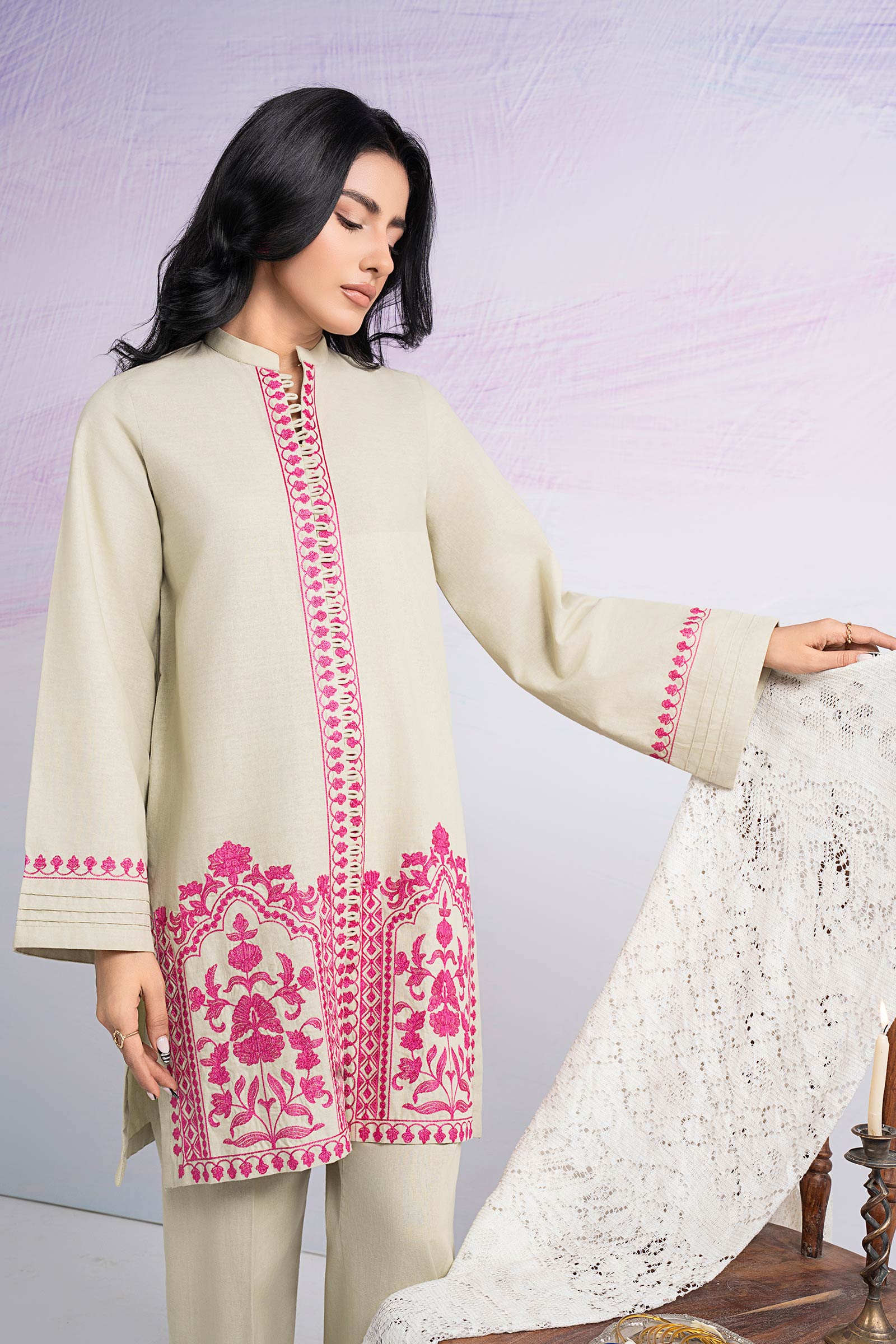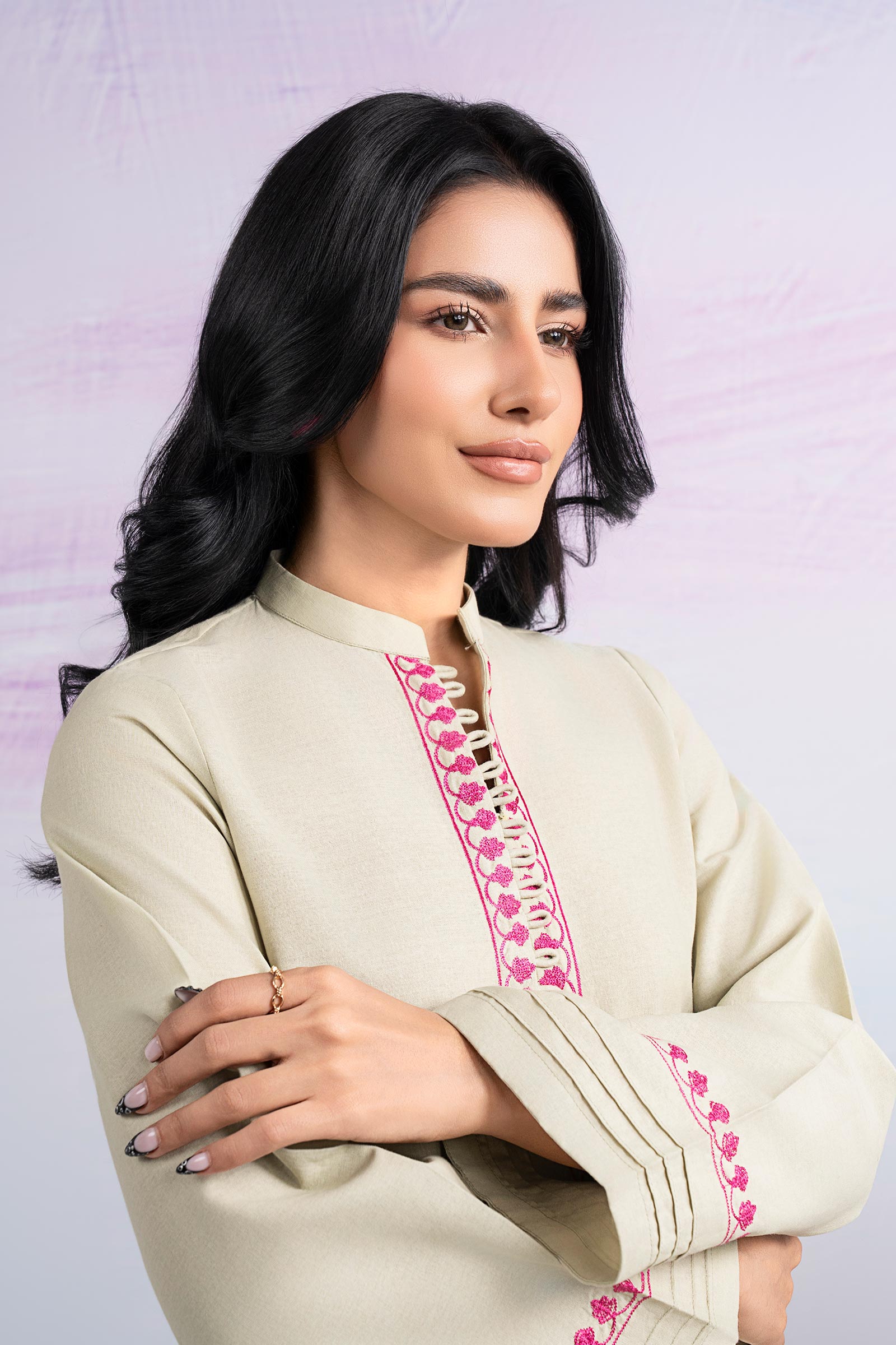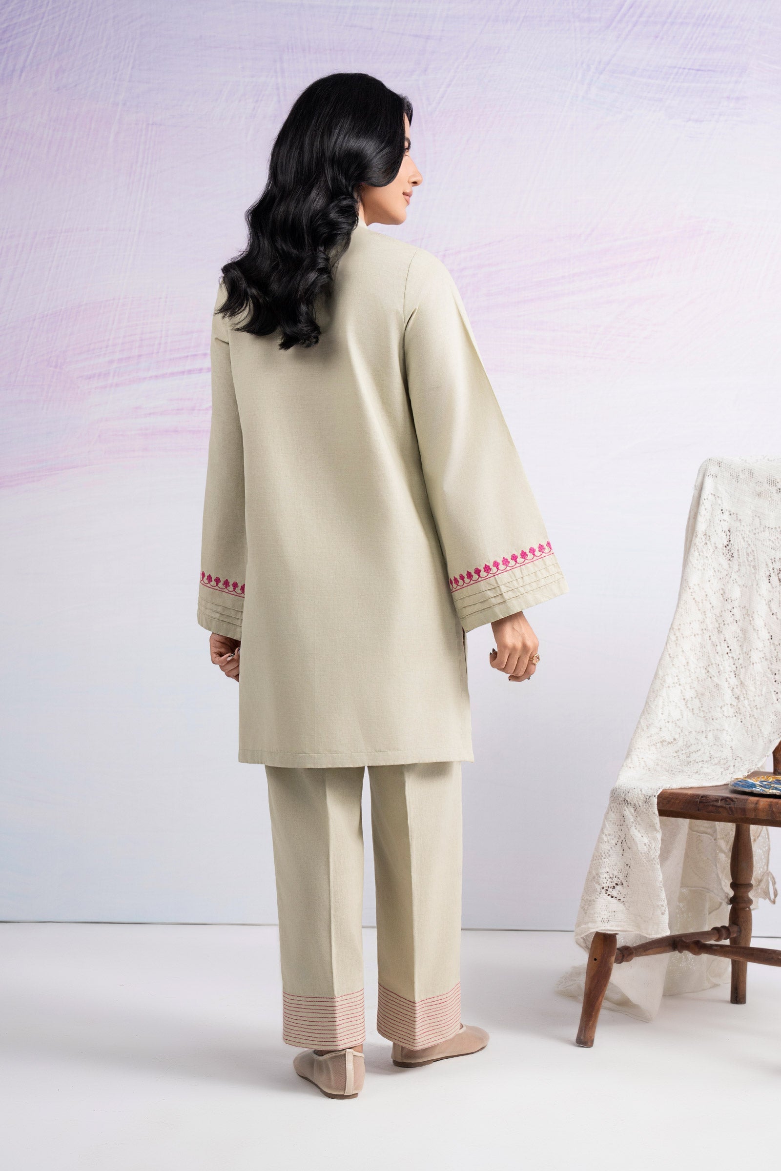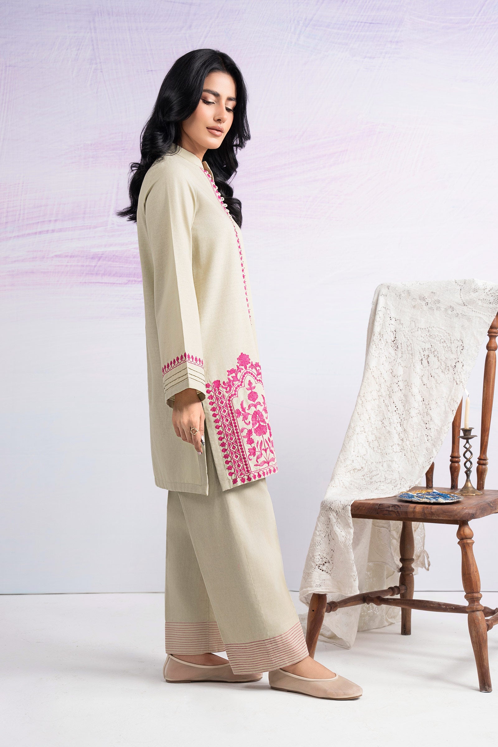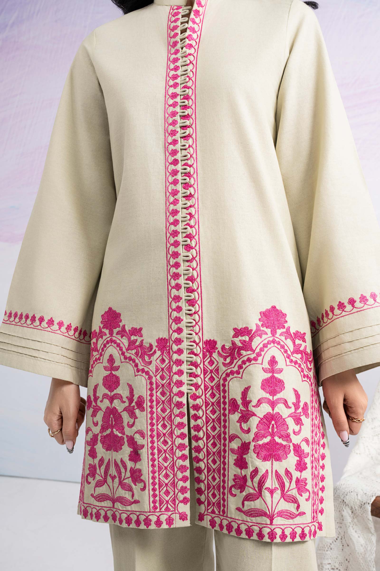 ShirtEmbroidered Front-Open ShirtBand Collar NecklineStraight Sleeves With Embroidered BorderColor: EcruFabric: Crisp LinenFit: RegularTrouserCulotte PantsElasticated WaistbandColor: EcruFabric: Crisp LinenFit: RegularModel is wearing xs sizeNote: Dry Clean Only