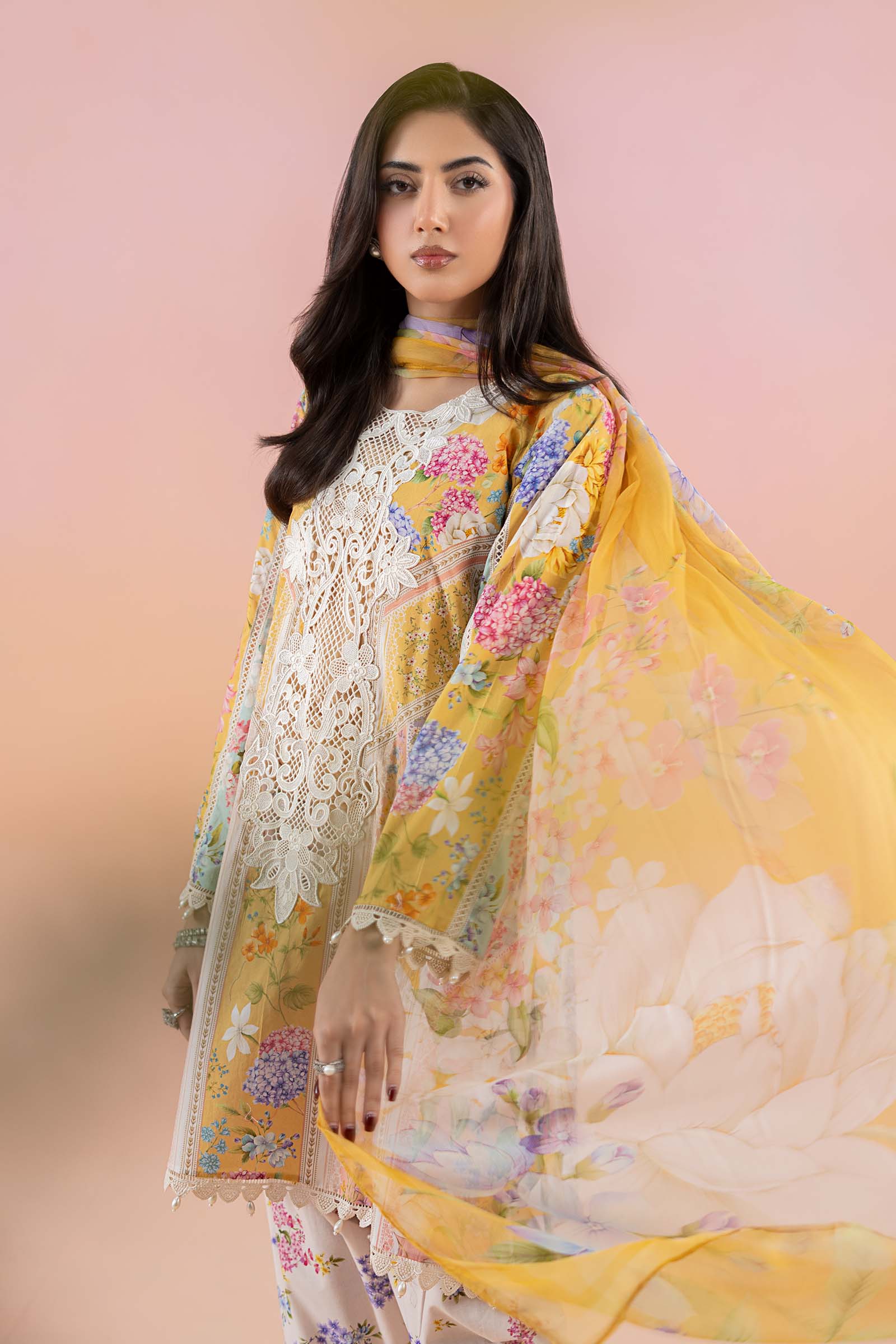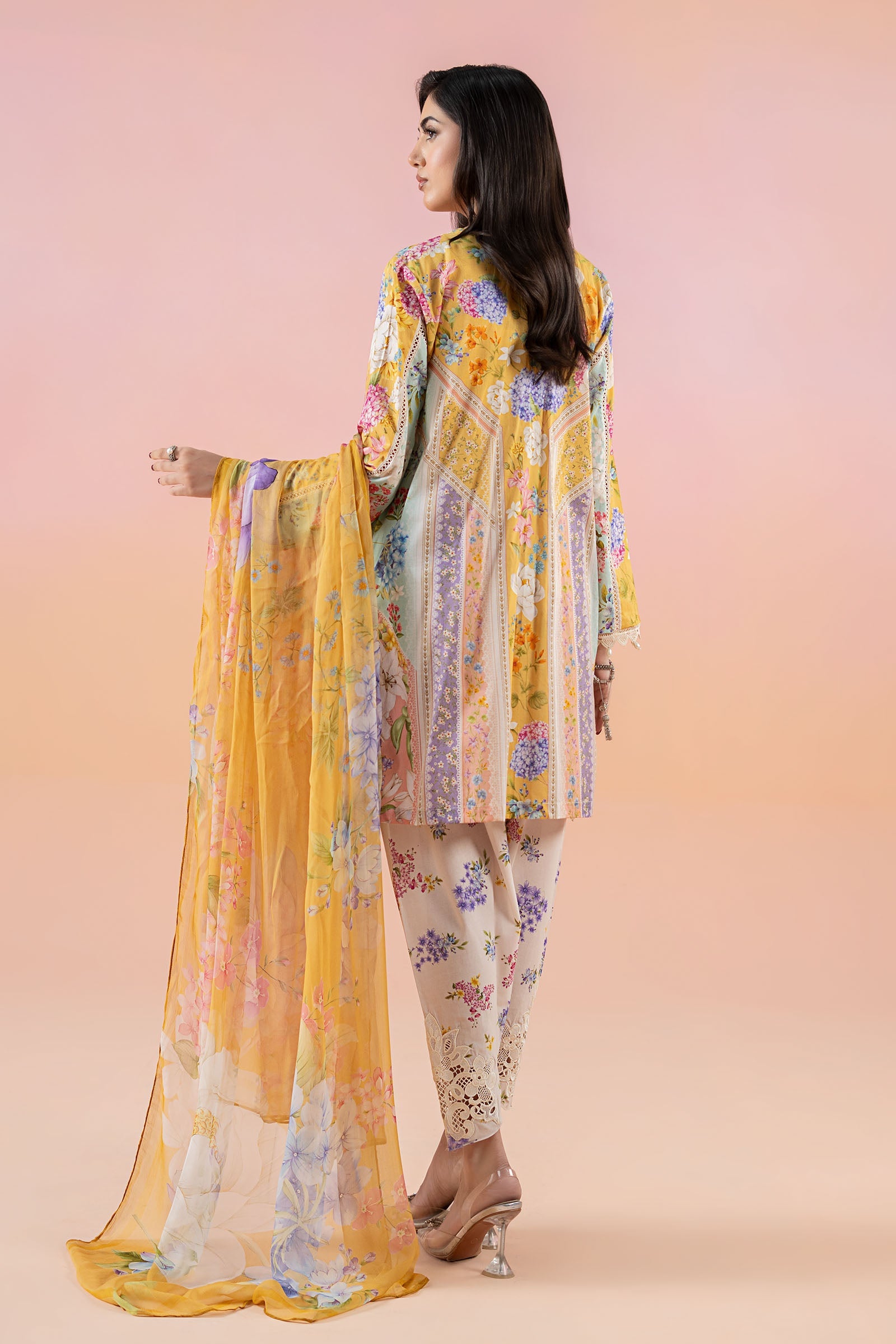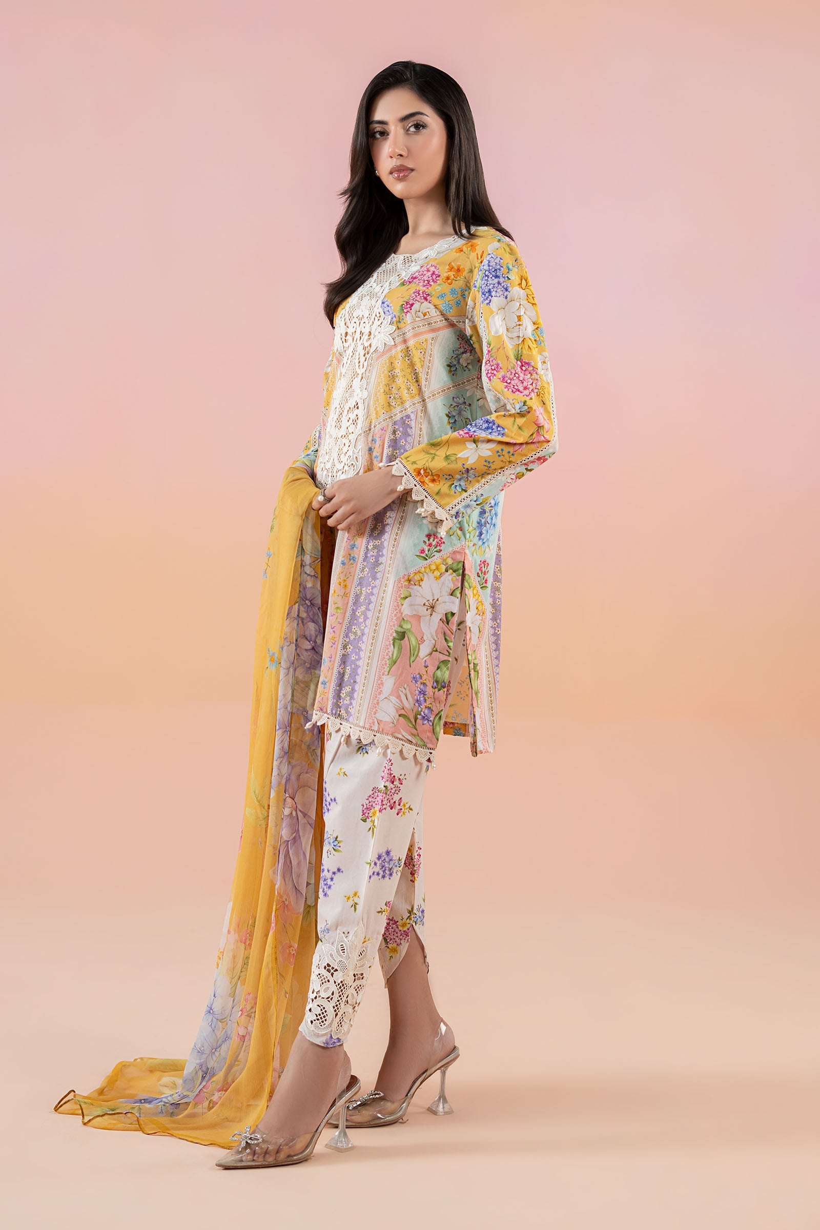 ShirtPrinted Straight-Cut ShirtEmbroidered Round NecklineLace & Pearl Drop Detailing On BorderPrinted Sleeves With Lace & Pearl Drop Detailing On BorderFabric: LawnColor: Mustard & PinkShalwarPrinted Tulip ShalwarElasticated WaistbandEmbroidered HemFabric: CambricColor: Mustard & PinkDupattaPrinted DupattaFabric: ChiffonColor: Mustard & PinkModel is wearing xs sizeNote: Dry Clean Only