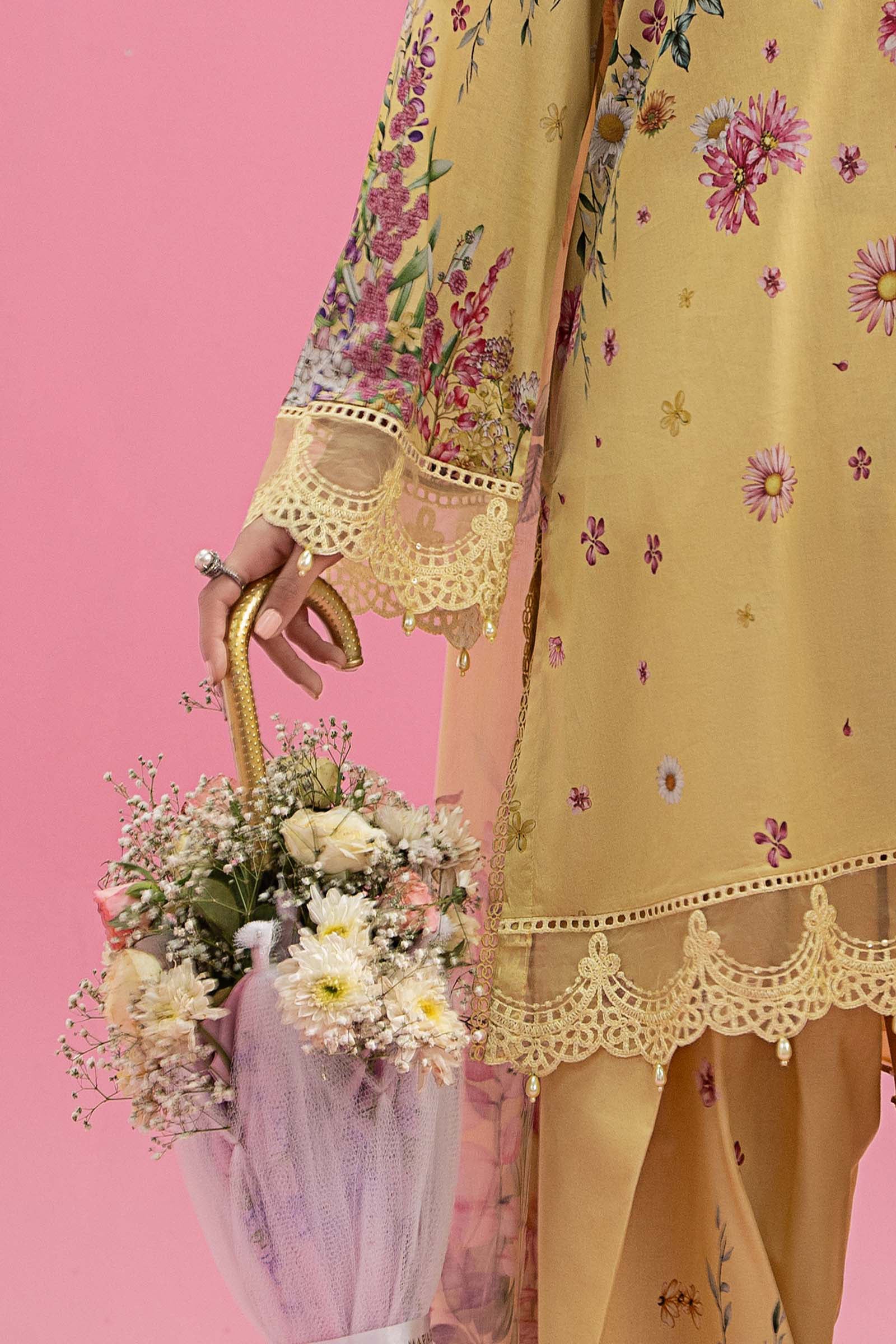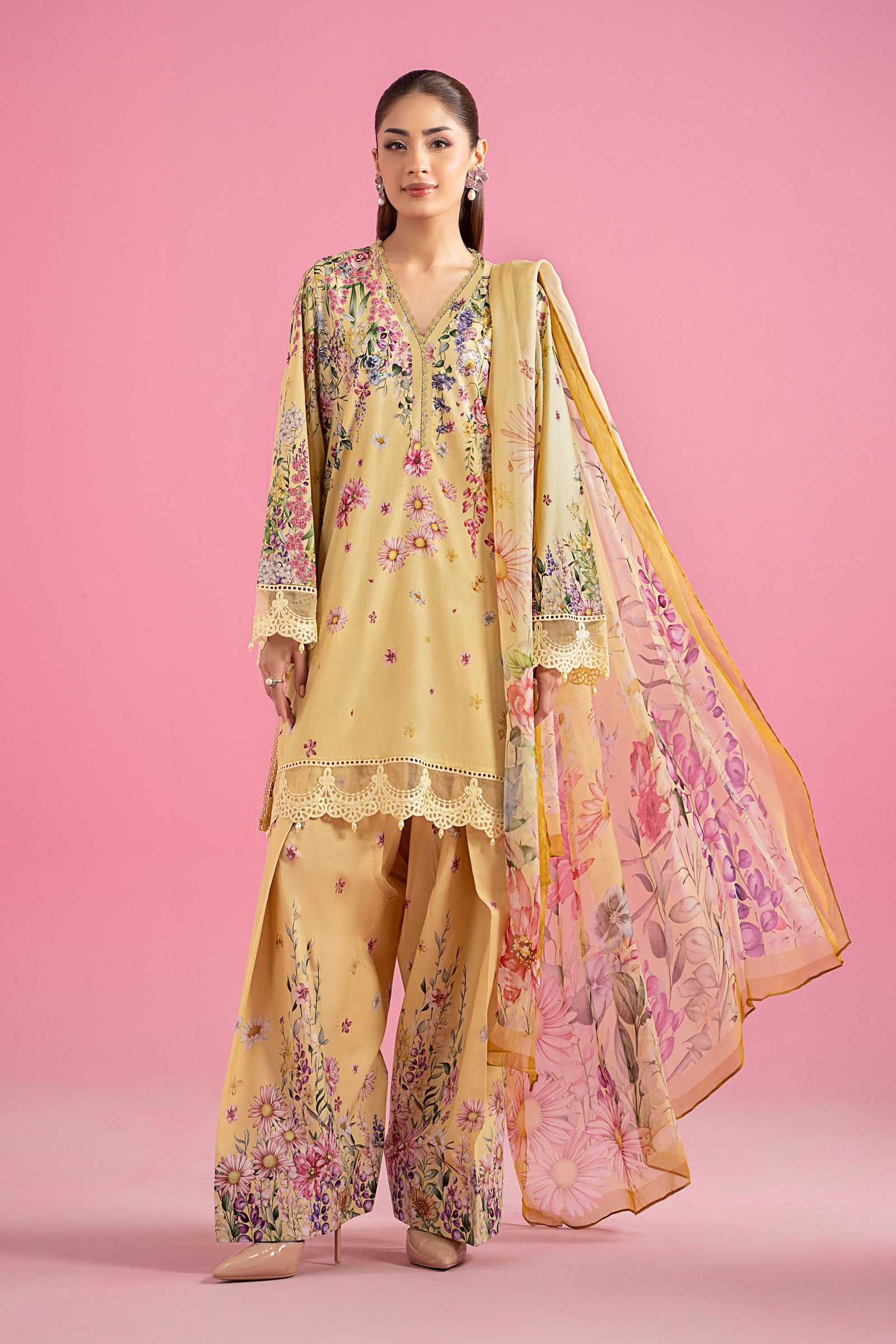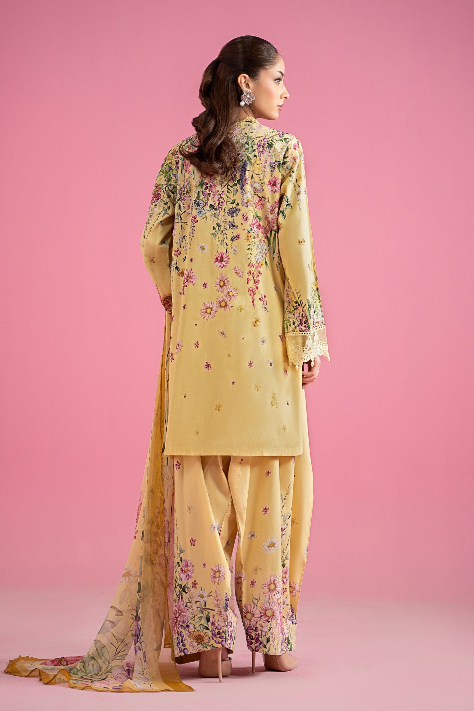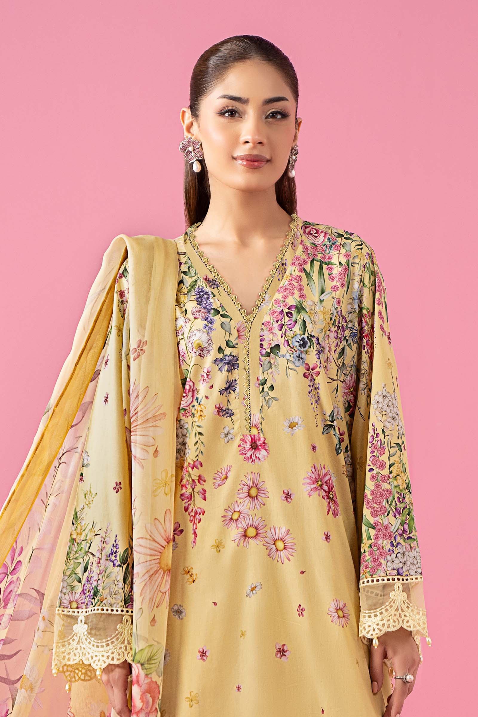 ShirtPrinted Straight-Cut ShirtOverlap Neckline With Lace DetailingOrganza Embroidered Scalloped BorderPrinted Sleeves With Organza Embroidered BorderPearl Drop Detailing On Sleeves & BorderFabric: LawnColor: YellowShalwarPrinted ShalwarElasticated WaistbandFabric: CambricColor: YellowDupattaPrinted DupattaFabric: ChiffonColor: YellowModel is wearing xs sizeNote: Dry Clean Only