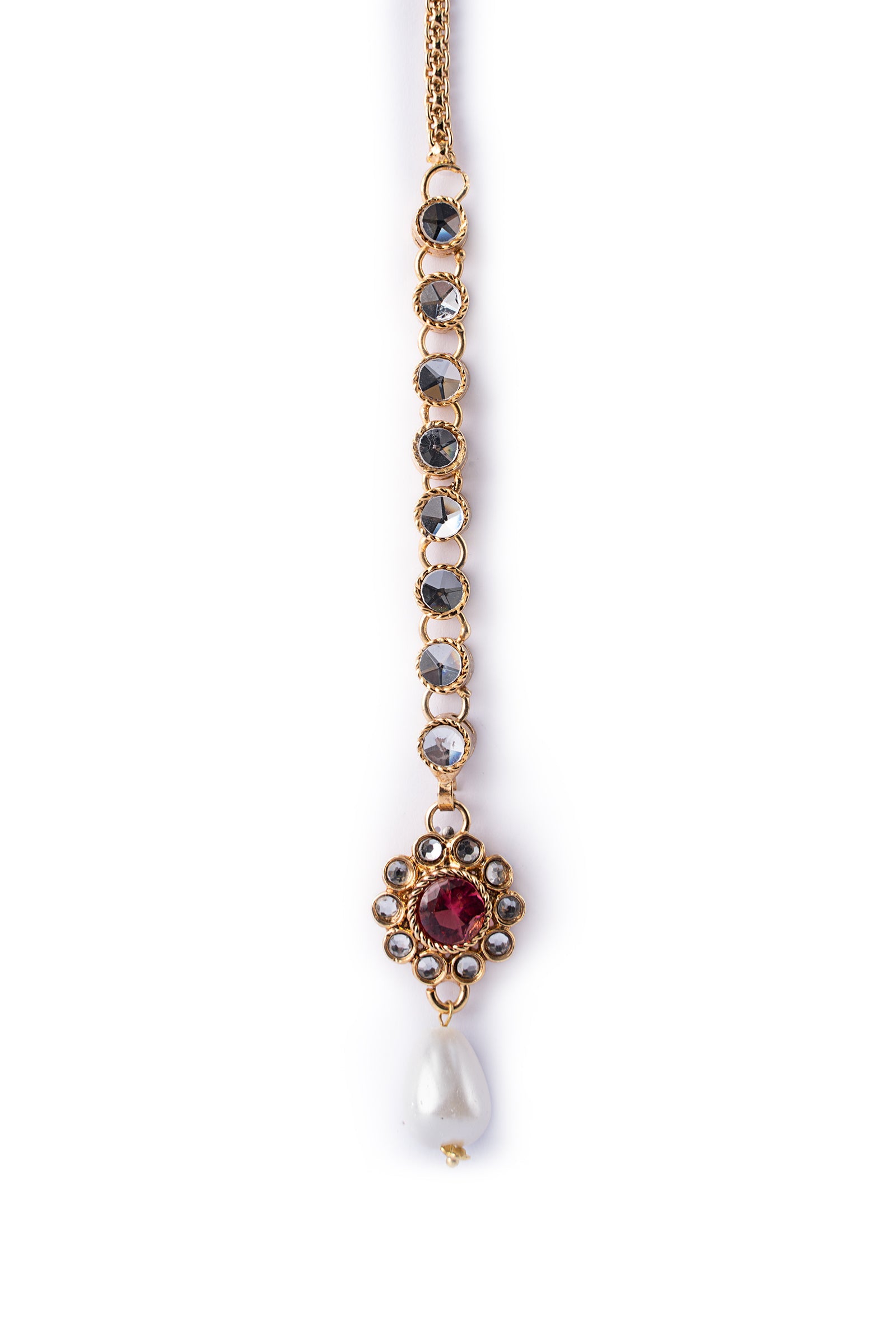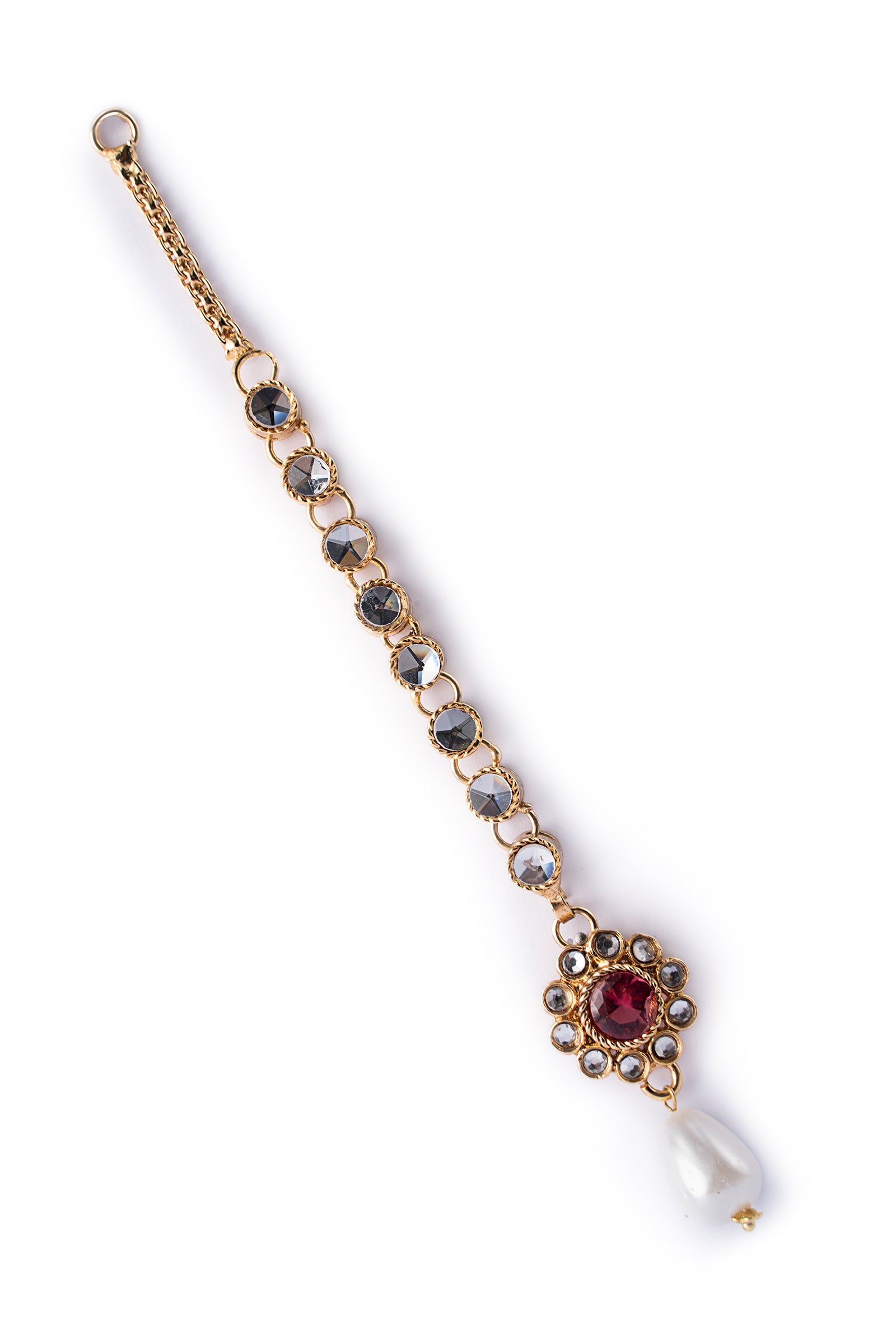 Graceful yet classic; our kid's Nurul Tika is laid out with handcut glass artistry in a delicate design. These glistening stones are clustered around the rose pink glass with a pearl drop making it a perfect choice for adding sophistication to your princess's festive look.